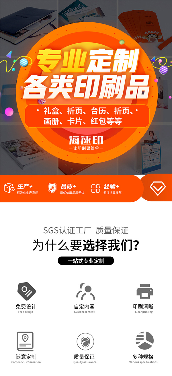 ??谟∷S,海速印采用進(jìn)口海的德堡印刷設(shè)備和先進(jìn)的色彩管理系統(tǒng)印刷制作,可根據(jù)客戶不同材質(zhì)、規(guī)格和工藝量身印刷定制各種印品;