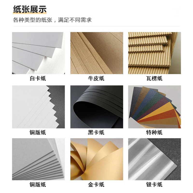 印刷紙張:銅版紙、雙膠紙、啞粉紙、珠光紙、其他藝術(shù)紙(藝術(shù)紙種類較多我們可以免費(fèi)提供紙樣供您選擇)
